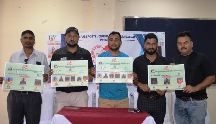 आयोजक नेपाल खेलकुद पत्रकार मञ्च कैलालीले आज धनगढीमा पत्रकार सम्मेलन गर्दै संजीवनी अस्पताल बर्ष खेलाडी पुरुष र हिमालयन गौरीशंकर डेन्टल क्लिनिक बर्ष खेलाडी महिला विधाको मनोनयन सार्वजनिक गरिएको हो ।