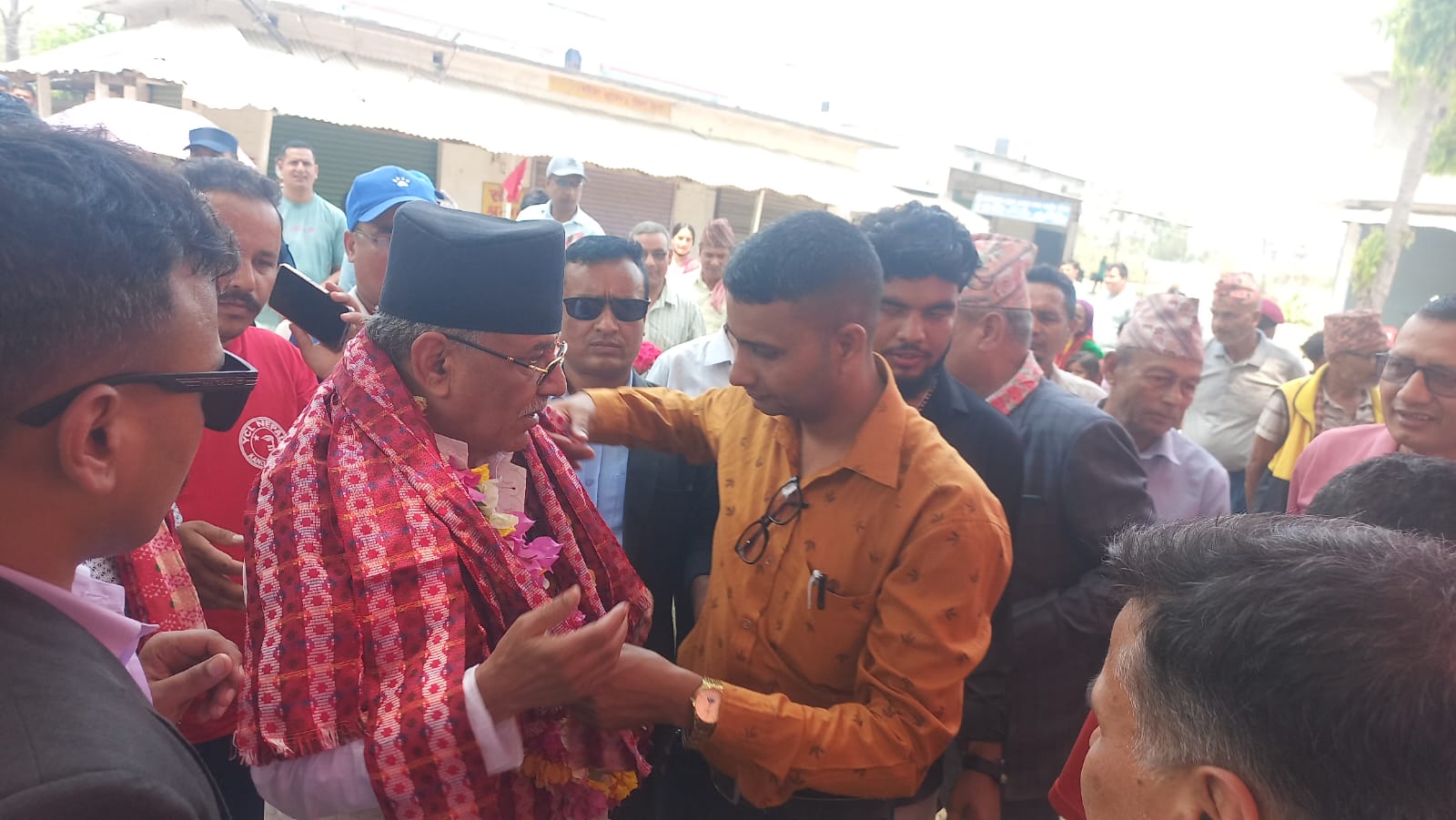 बिना मगरकै क्षेत्रमा भेटिएनन् माओवादी कार्यकर्ता, माला मात्रै लगाएर फर्किए प्रचण्ड